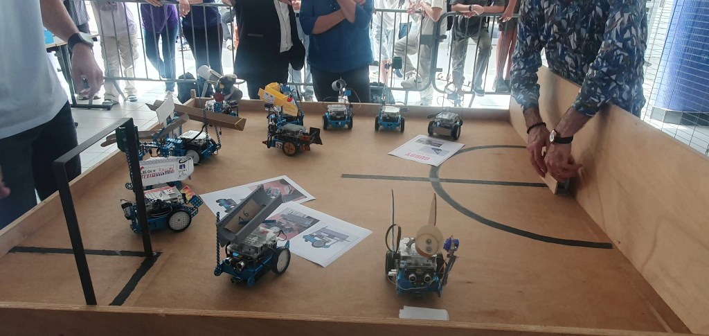 Le club robotique est un club qui a été lancé au troisième trimestre de l’année scolaire 2024-2025, dans le cadre d’une liaison entre le collège de l’Isle et le Lycée polyvalent Galilée, voisin immédiat. Quelques élèves volontaires, de la 6e à la 3e, ont rejoint une fois par semaine en mai et juin un professeur de sciences de l’ingénieur, lui-même ancien professeur de technologie au collège. Répartis en deux groupes, ils ont chacun préparé et programmé un robot Mbot en lui rajoutant des pièces, des minis cerveaux et en le commandant à l’aide du logiciel mBlock. Peu de séances mais beaucoup d’enthousiasme pour se préparer au concours final, en compétition avec les robots des lycéens… le vendredi 6 juin dernier.