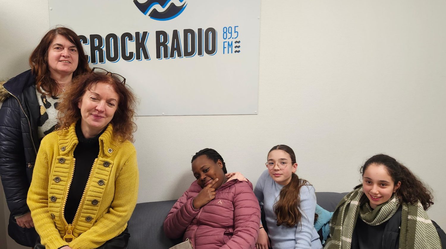 L’événement très marquant de ce temps fort franco-allemand aura également été l’émission enregistrée en direct depuis le studio de la radio associative locale Crock Radio le mercredi 28 janvier dernier… Une première pour quatre élèves de 5ème (trois présentes sur la photo), membres du club médias, und für die Lehrerin ! A retrouver à l’écoute ici !